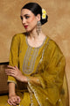 Mustard, silver-toned and brown embroidered kurta with trousers and dupatta