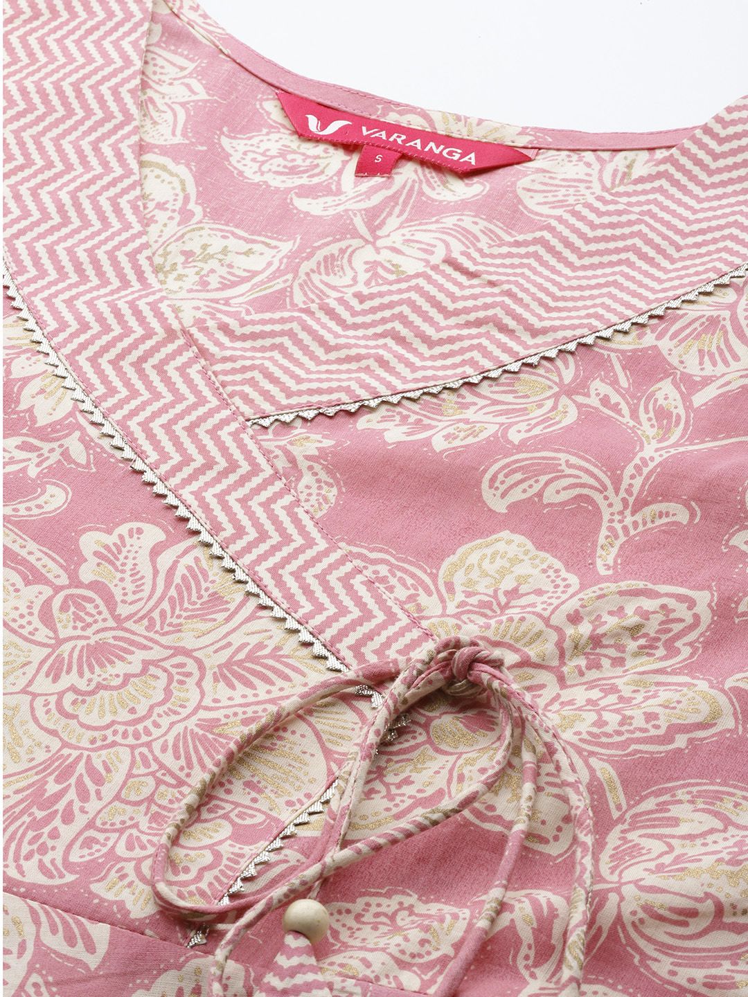 Dhiyona VA Women'sFloral Printed Angrakha Gotta Patti Pure Cotton Kurta With Trousers