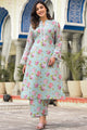 Sea green printed Kurta with Trouser