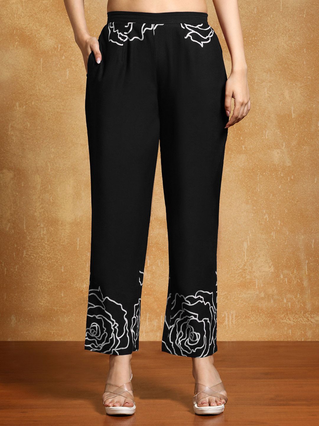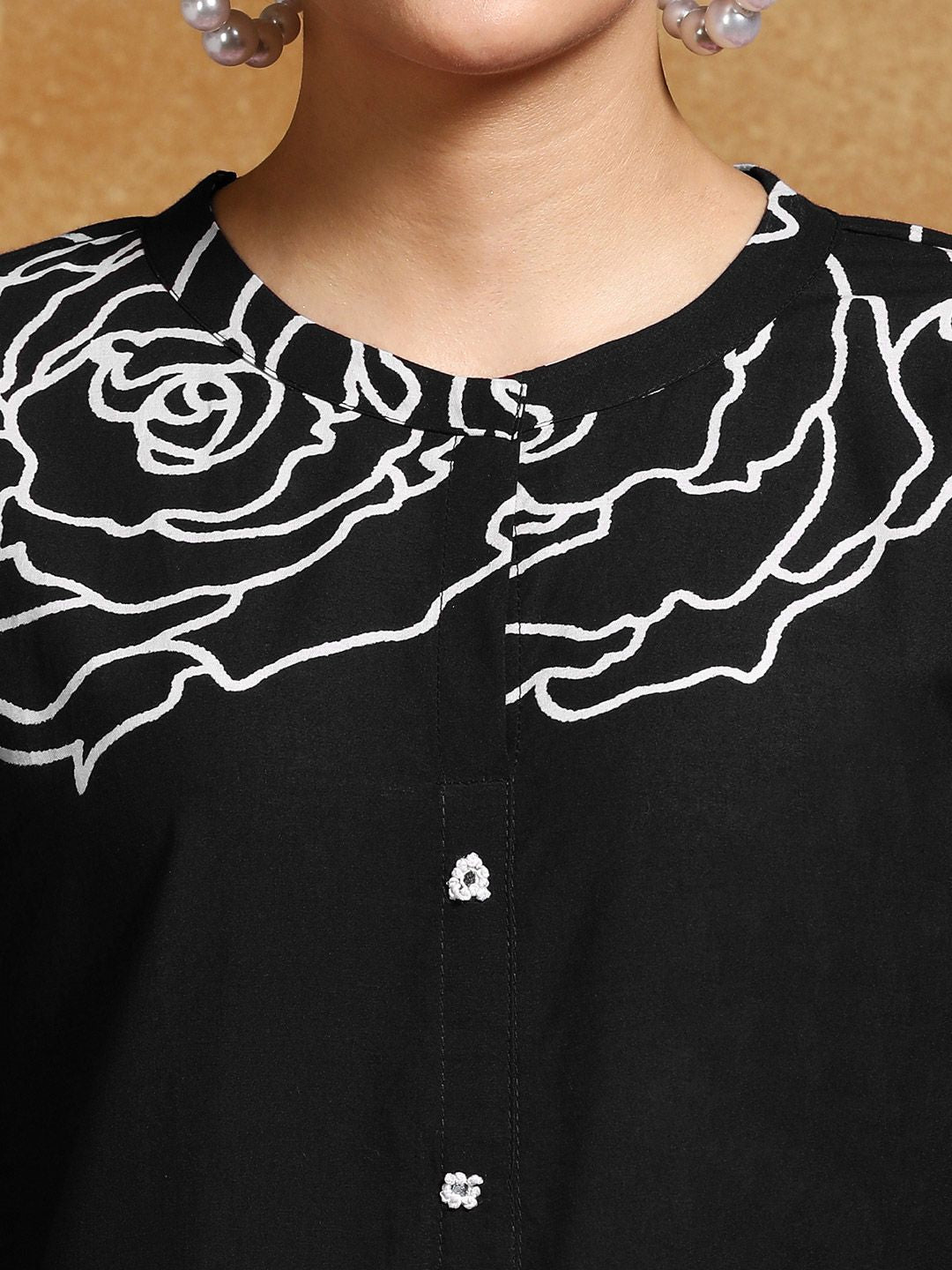 Dhiyona VA Women'sFloral Printed Mandarin Collar A-Line Pure Cotton Kurta With Trousers