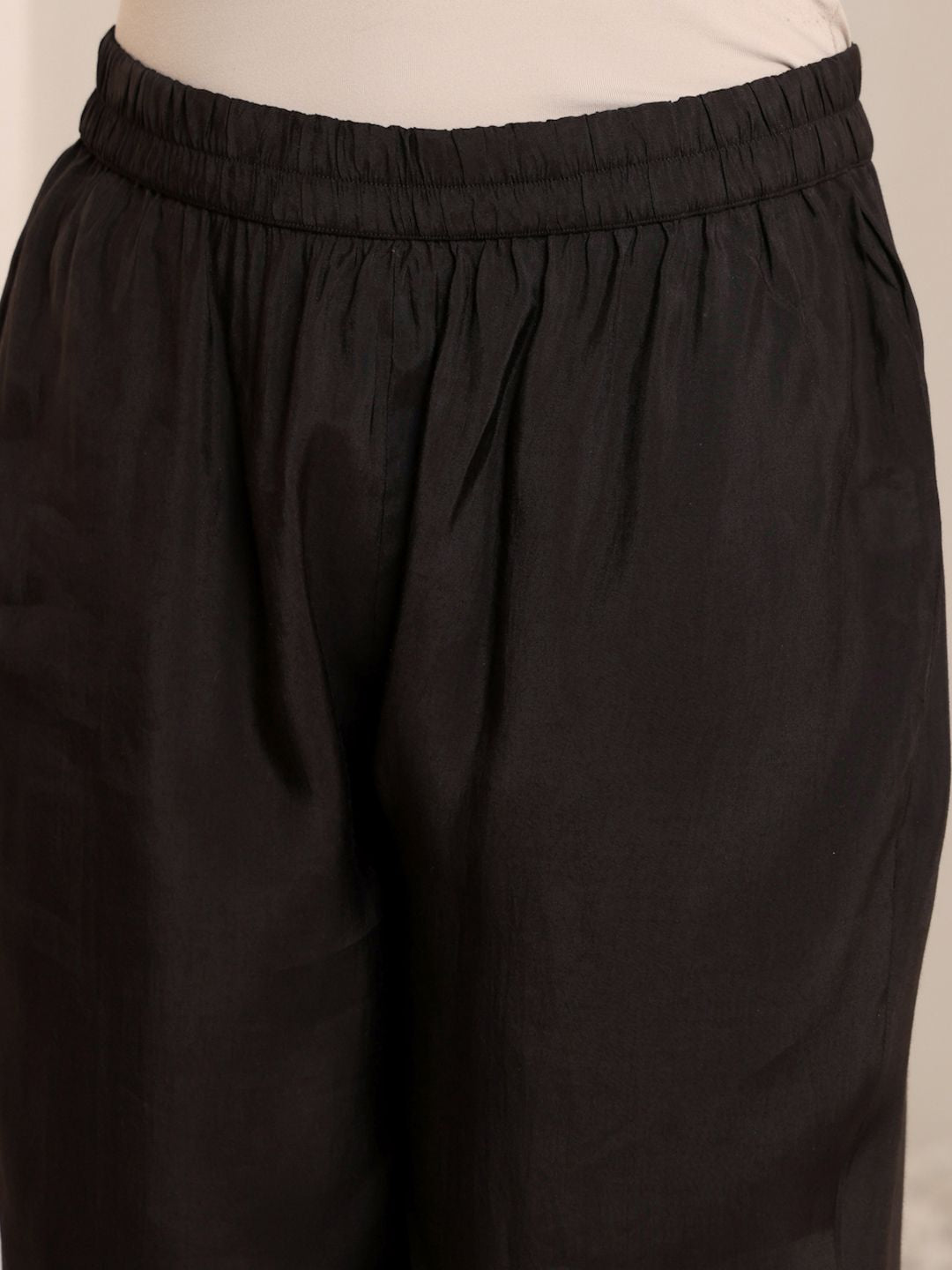 Dhiyona VA Women'sFloral Printed Mandarin Collar Chanderi Silk Straight Kurta With Trousers