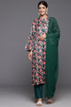 Dhiyona VA Women'sFloral Printed Mandarin Collar Kurta With Trousers & Dupatta