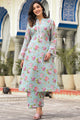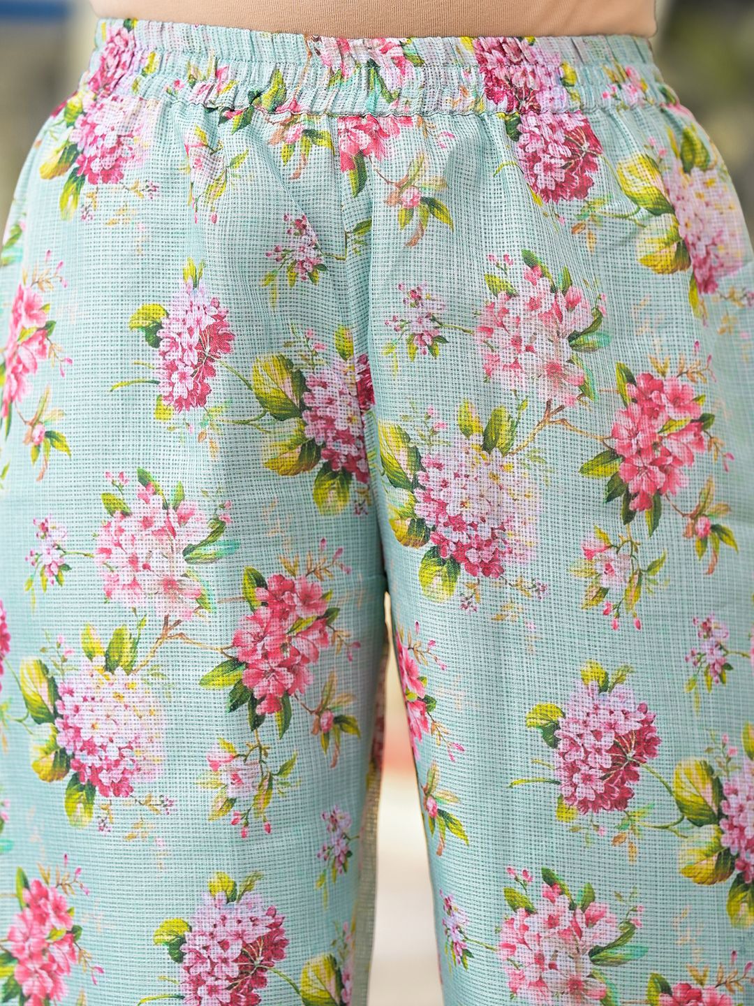 Dhiyona VA Women'sFloral Printed Mandarin Collar Regular Kurta With Trousers