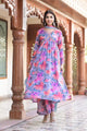 Dhiyona VA Women'sFloral Printed Mirror Embroidered Alia-Cut Gather Detail A-Line Kurta With Dupatta