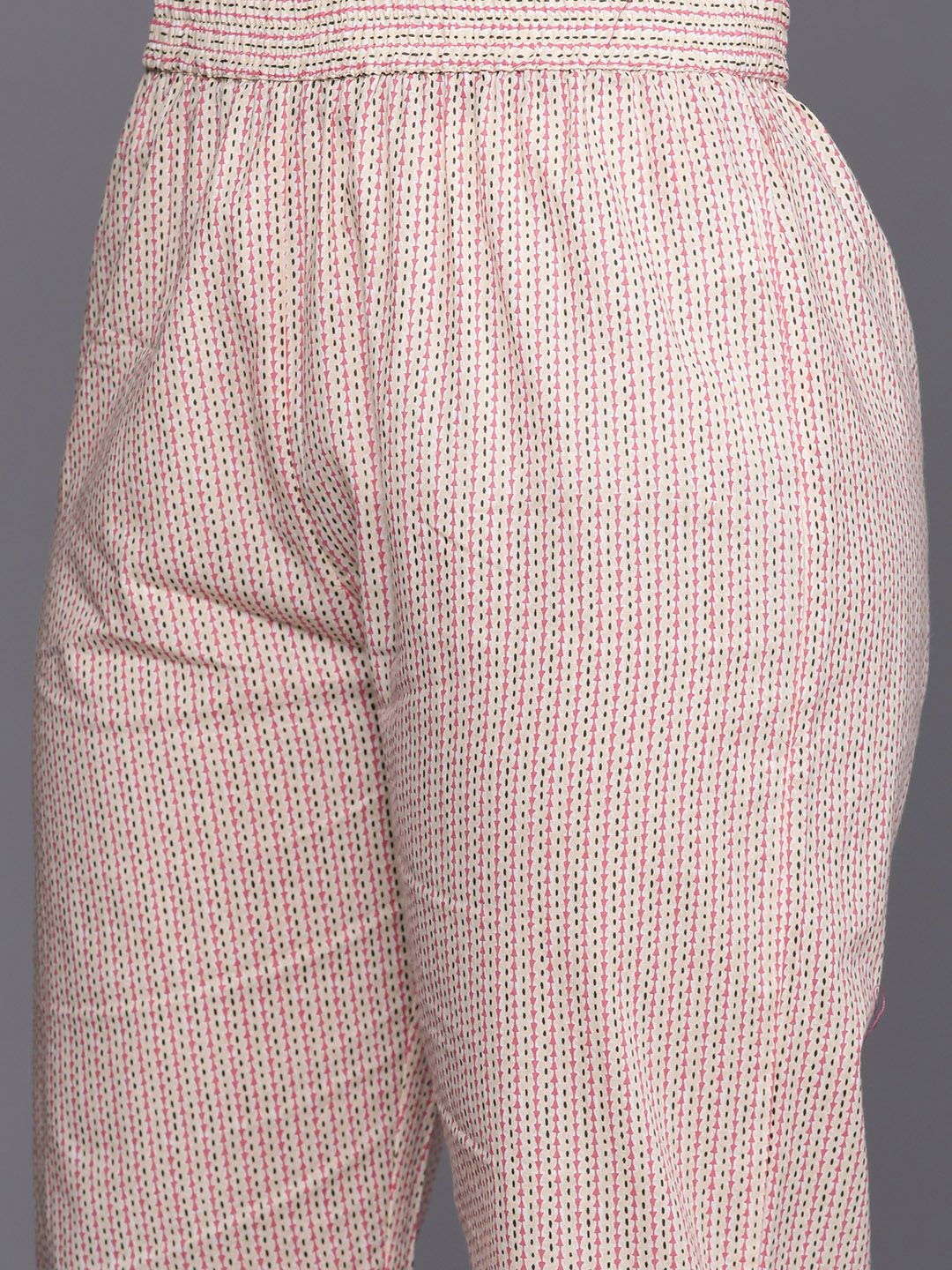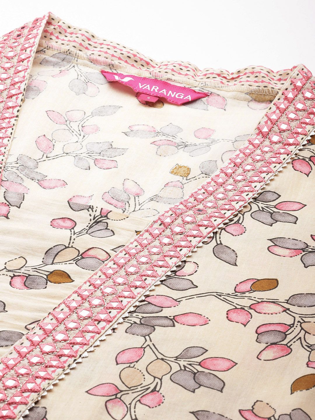 Dhiyona VA Women'sFloral Printed Mirror Work Pure Cotton Kurta with Trousers & Dupatta