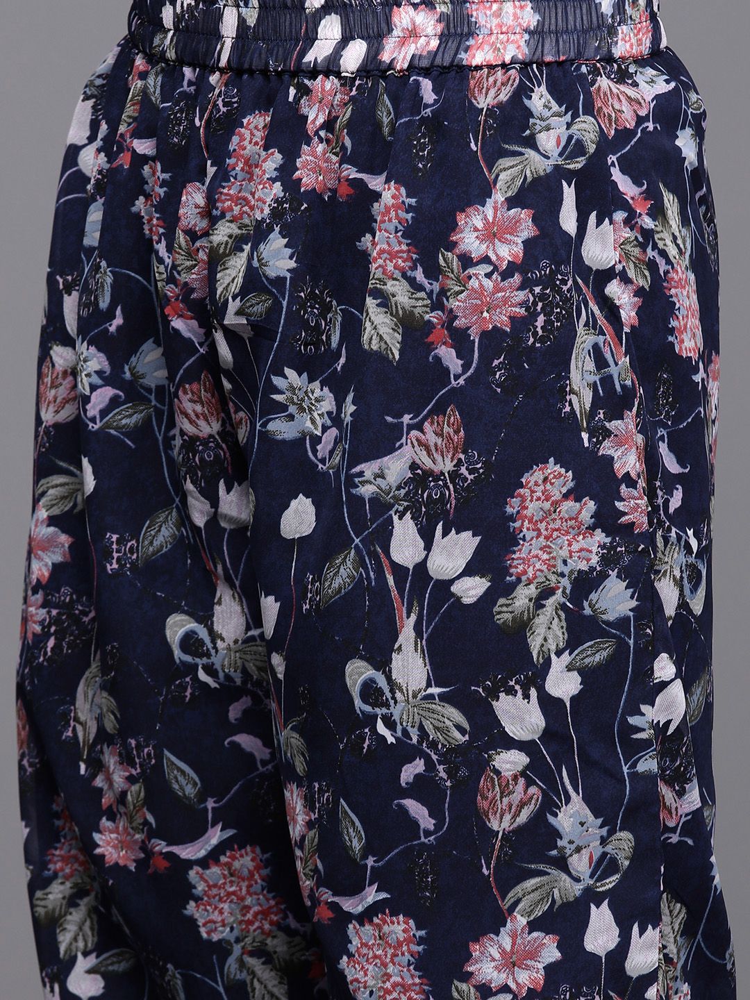 Dhiyona VA Women'sFloral Printed Pleated Gotta Patti Silk Georgette Kurta with Trousers & Dupatta