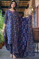 Navy blue printed Kurta with Trousers with dupatta
