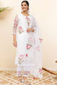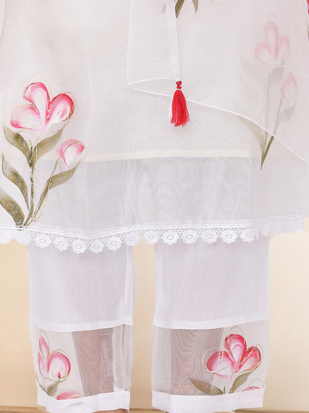 Off white, pink & green printed Kurta with Trousers with dupatta