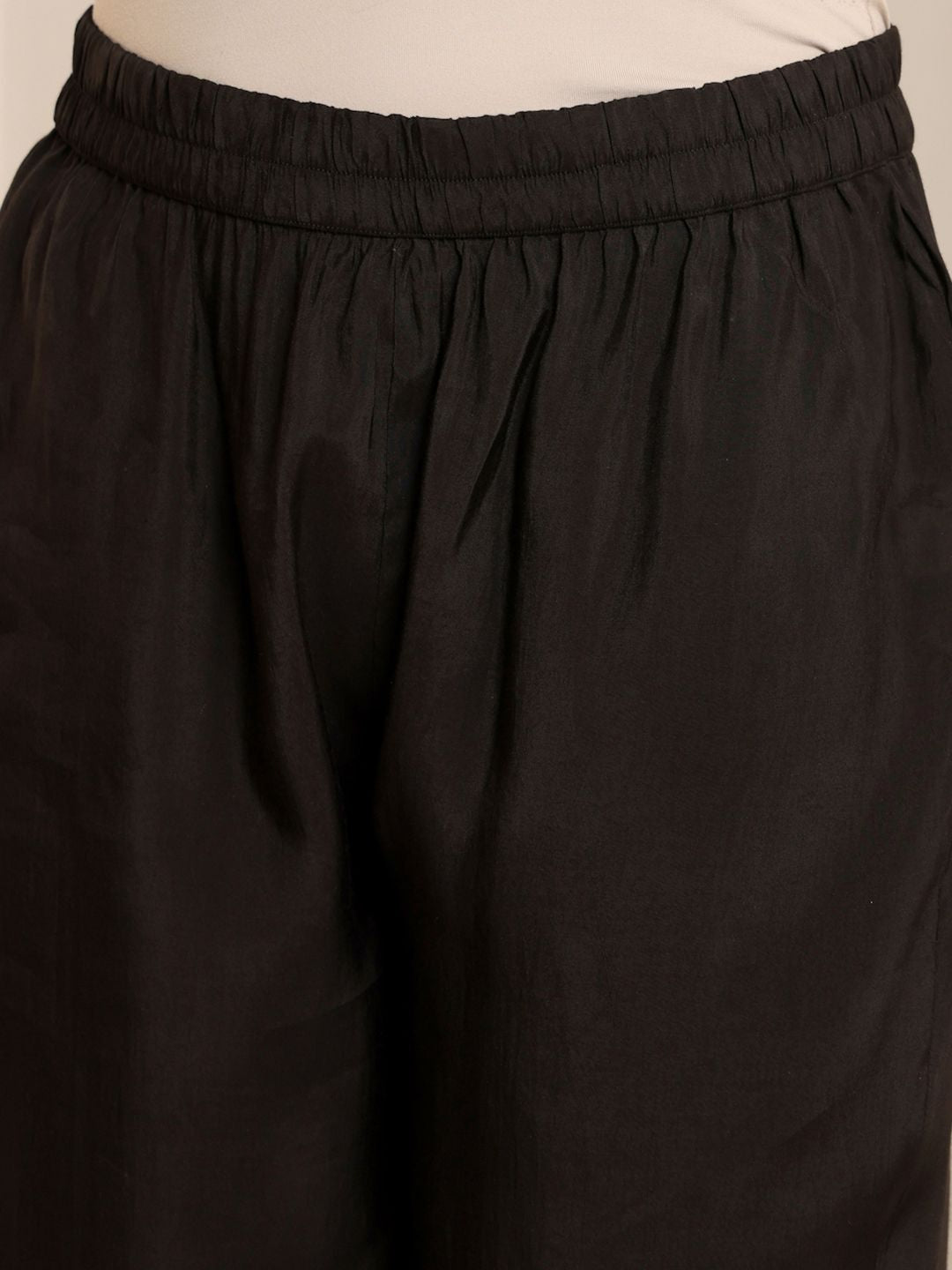 Dhiyona VA Women'sFloral Printed V-Neck A-Line Chanderi Silk Straight Kurta with Trousers