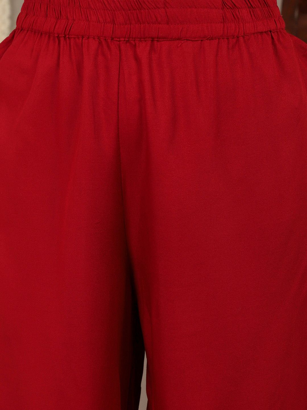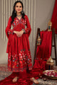 Red, pink & blue printed kurta & trousers with dupatta