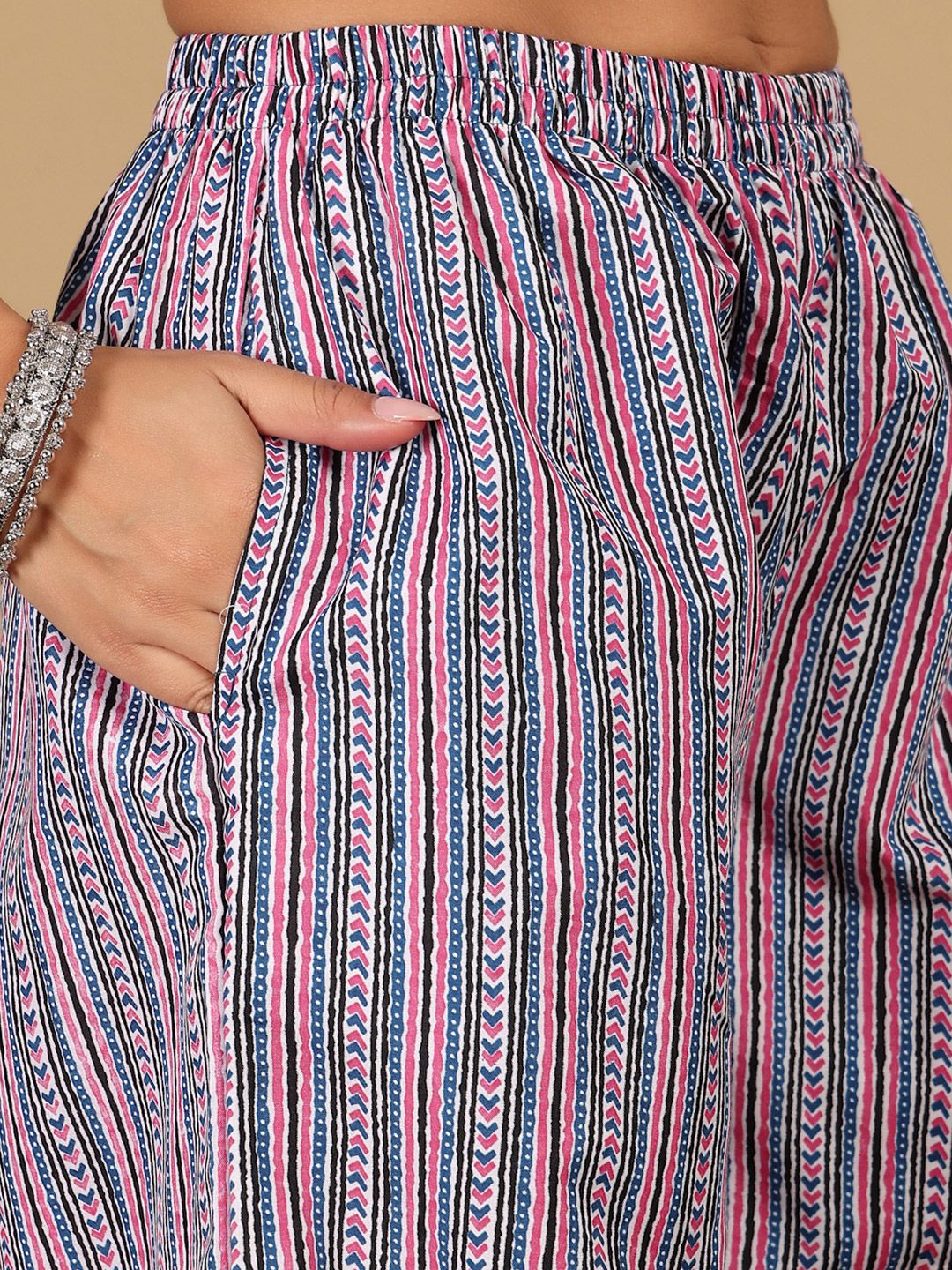 Dhiyona VA Women'sFloral Printed V-Neck Gotta Patti Kurta With Trousers & Dupatta