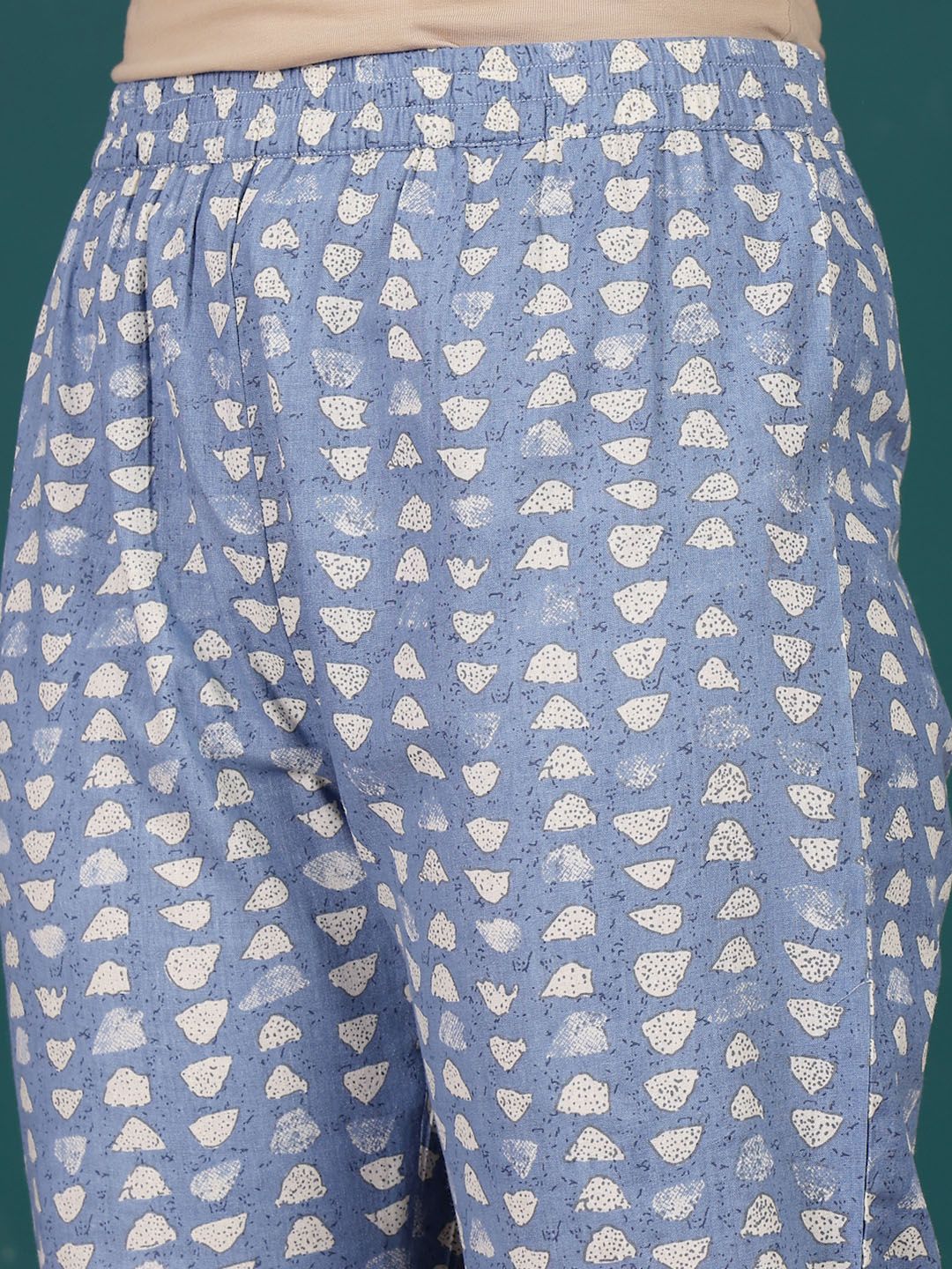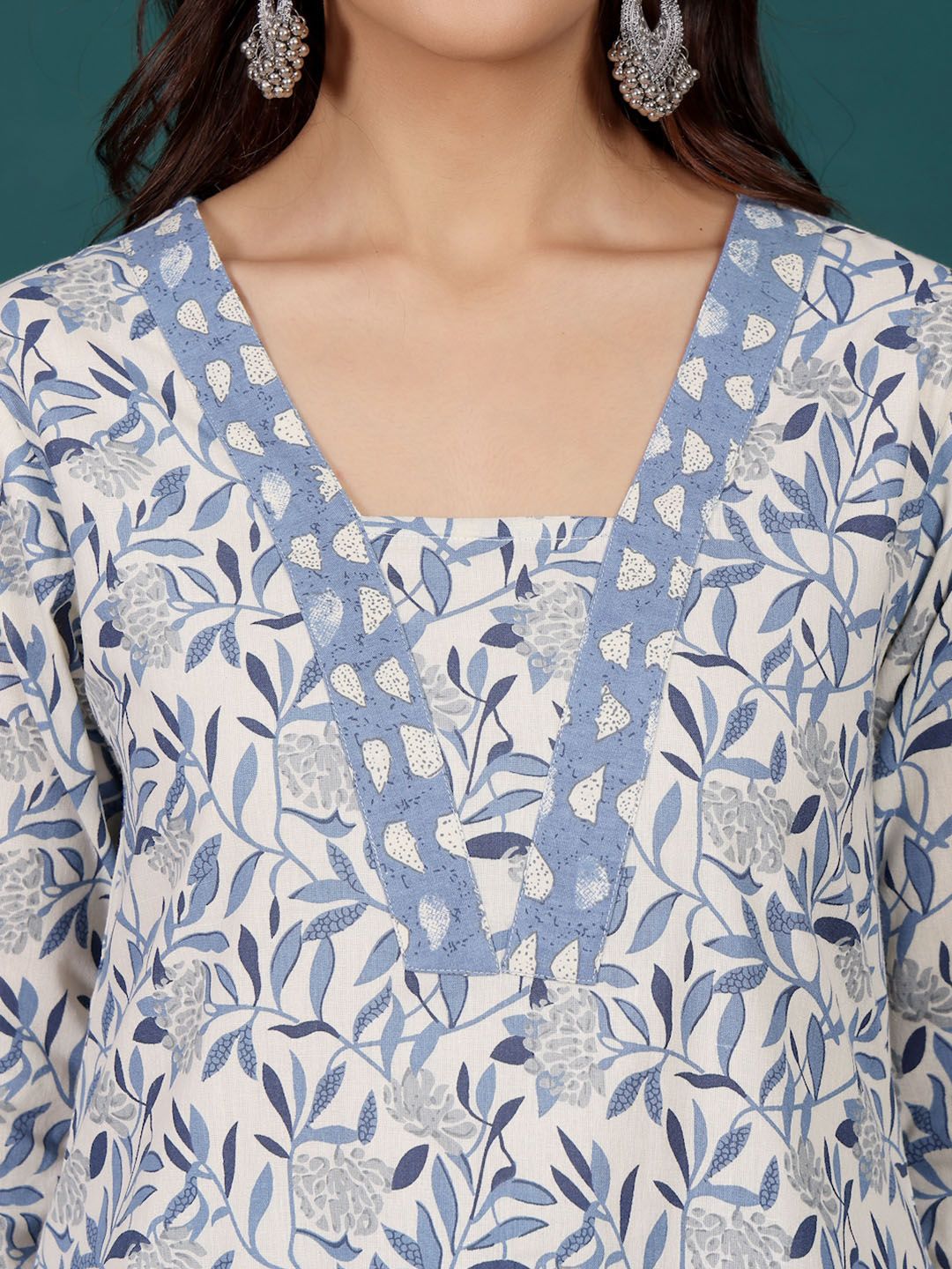 Dhiyona VA Women'sFloral Printed V-Neck Pure Cotton Straight Kurta With Trousers & Dupatta