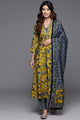 Mustard and grey printed kurta with trousers and dupatta