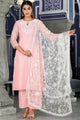 Pink zari and thread embroidered Kurta with Trousers with net embroidered dupatta