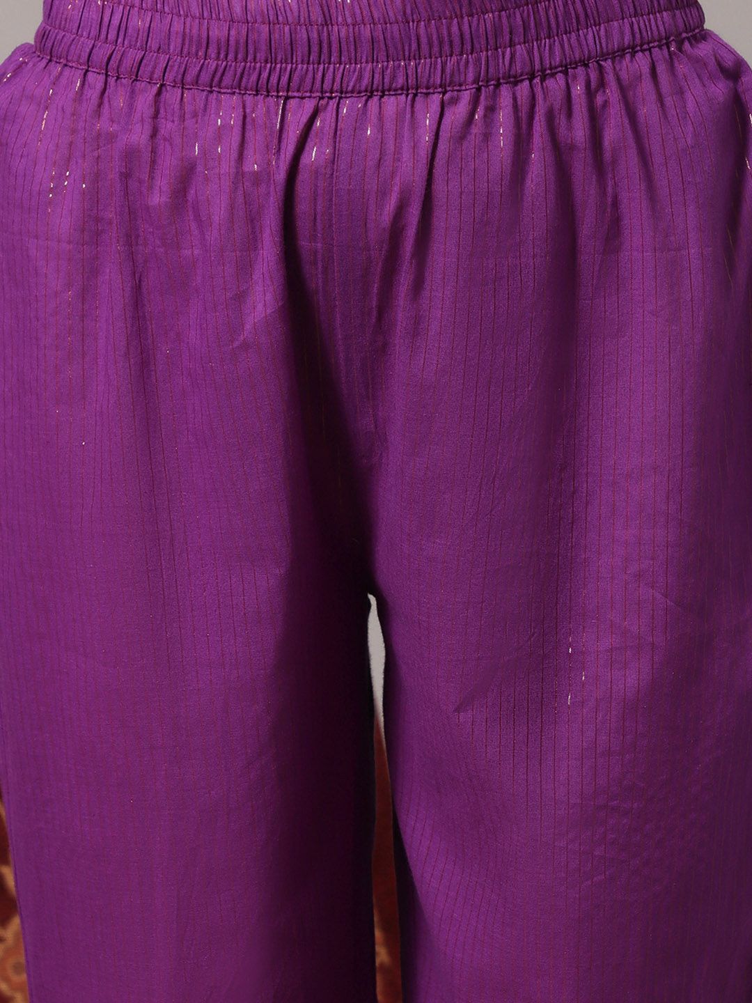 Purple, gold toned yoke design kurta with trousers with dupatta