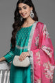 Dhiyona VA Women'sFloral Yoke Design Regular Thread Work Kurta with Trousers & With Dupatta