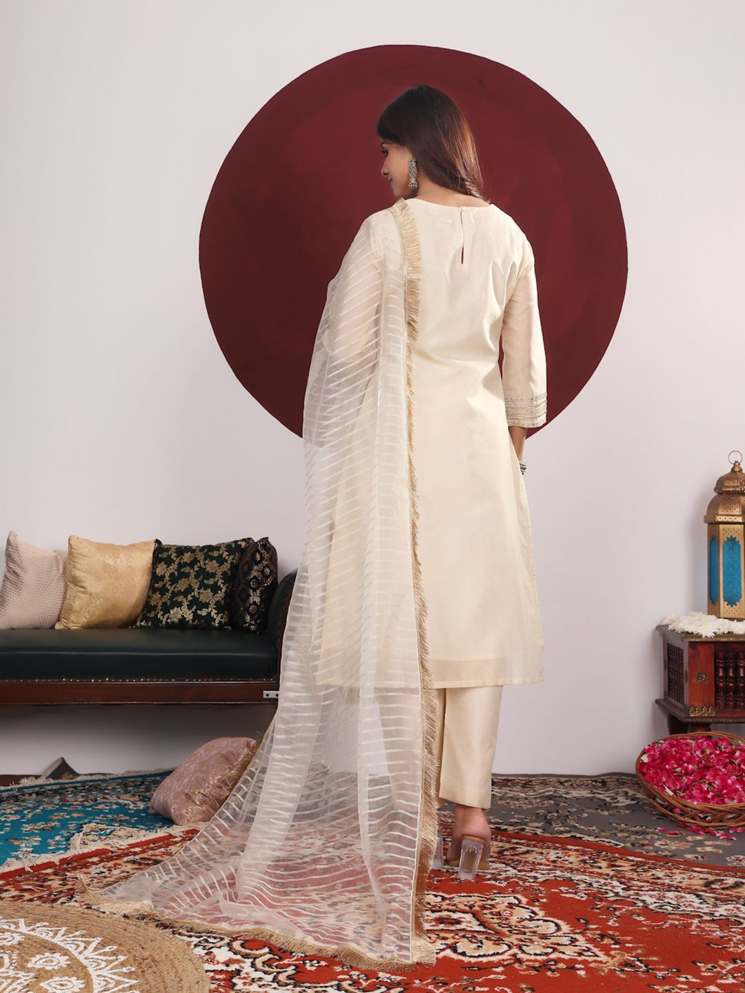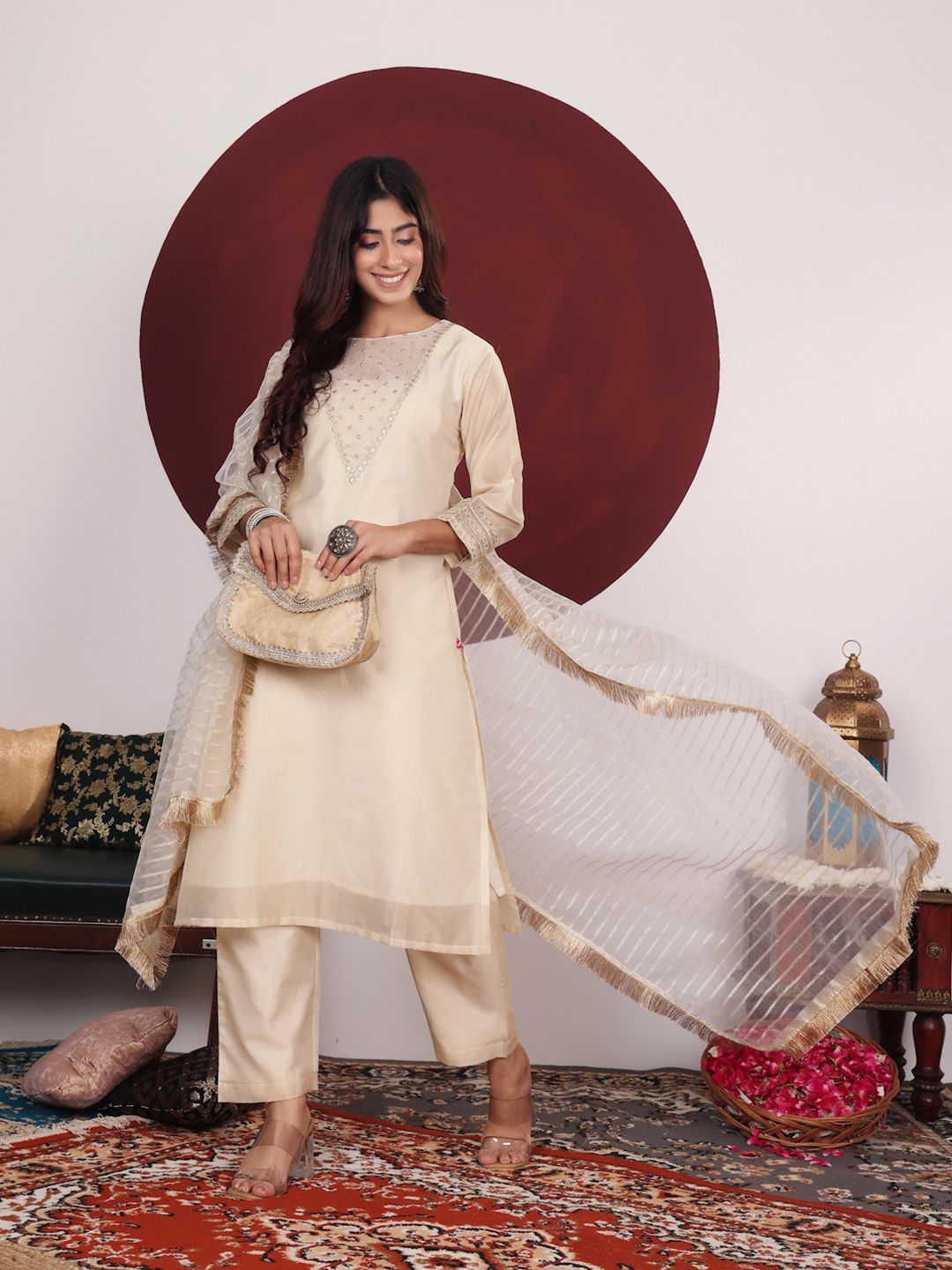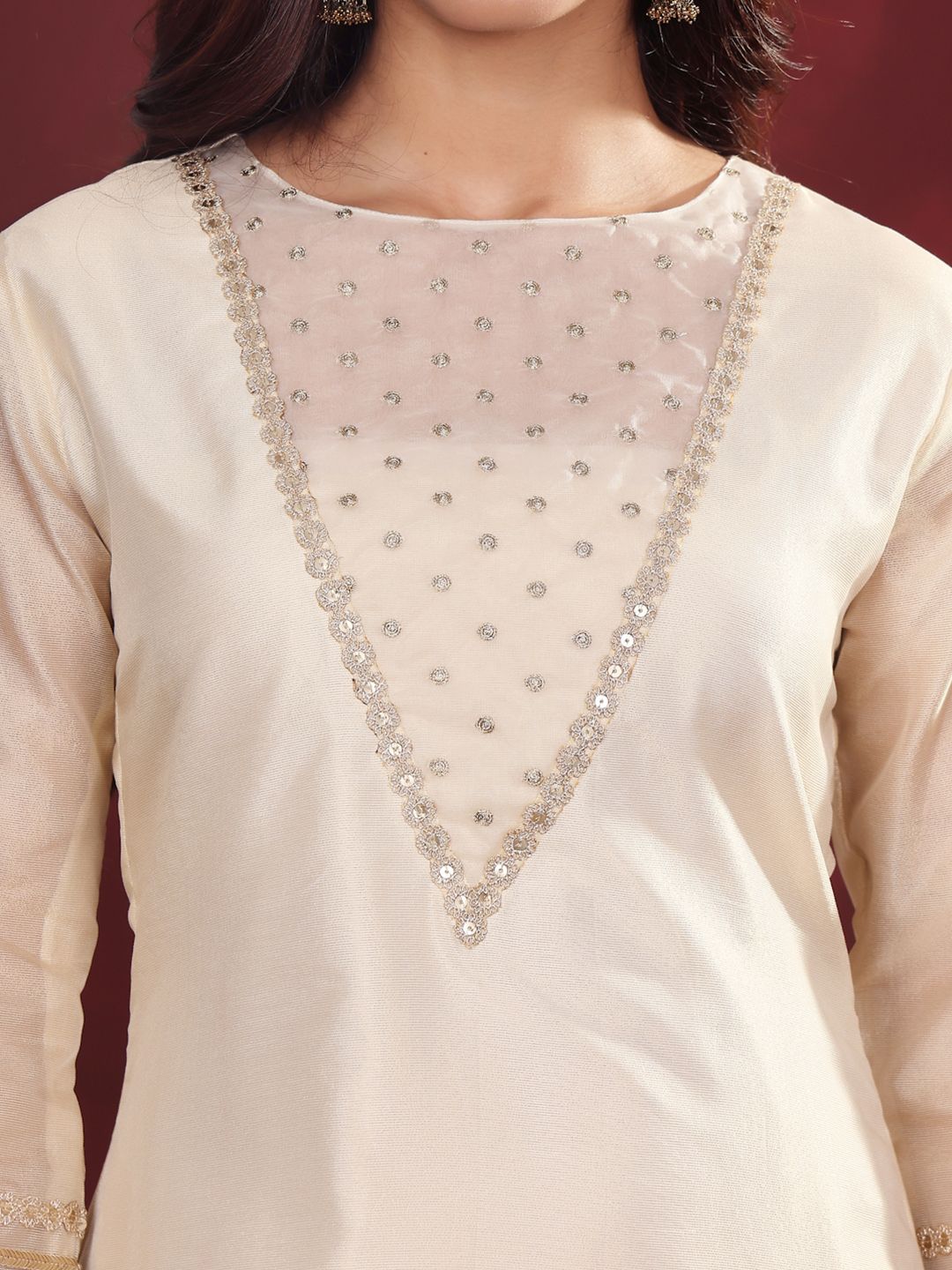 Off white yoke design Kurta with Palazzos with Dupatta