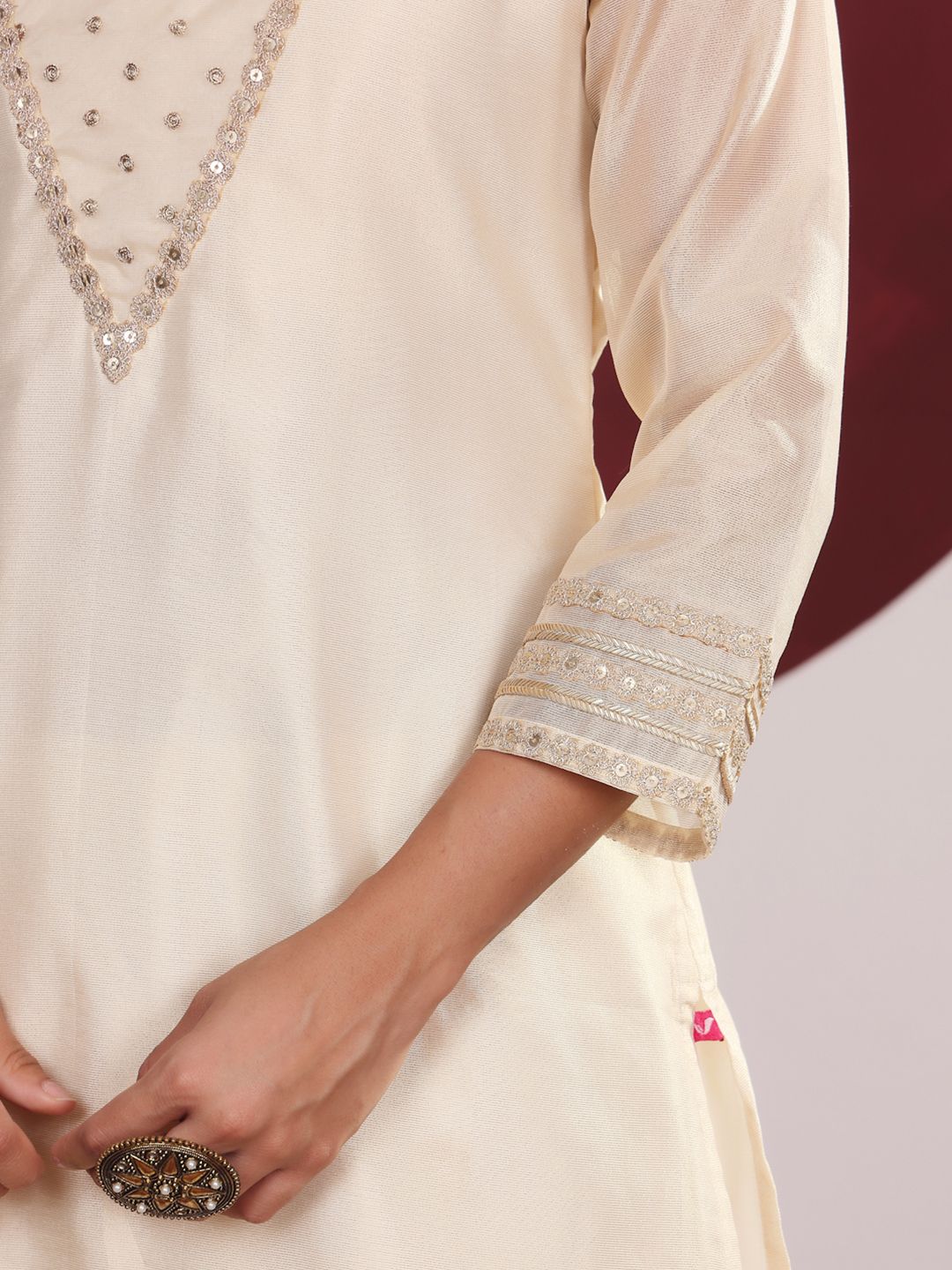 - Round neck, three-quarter regular sleeves