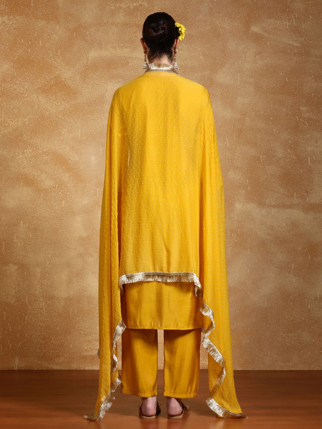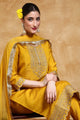 Dhiyona VA Women'sFloral Yoke Design Round Neck Straight Kurta With Trousers & Dupatta