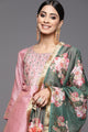 Pink, green & white yoke design Kurta with Trousers with dupatta
