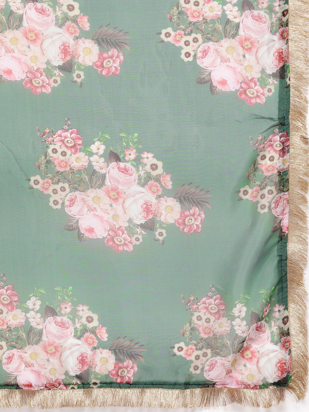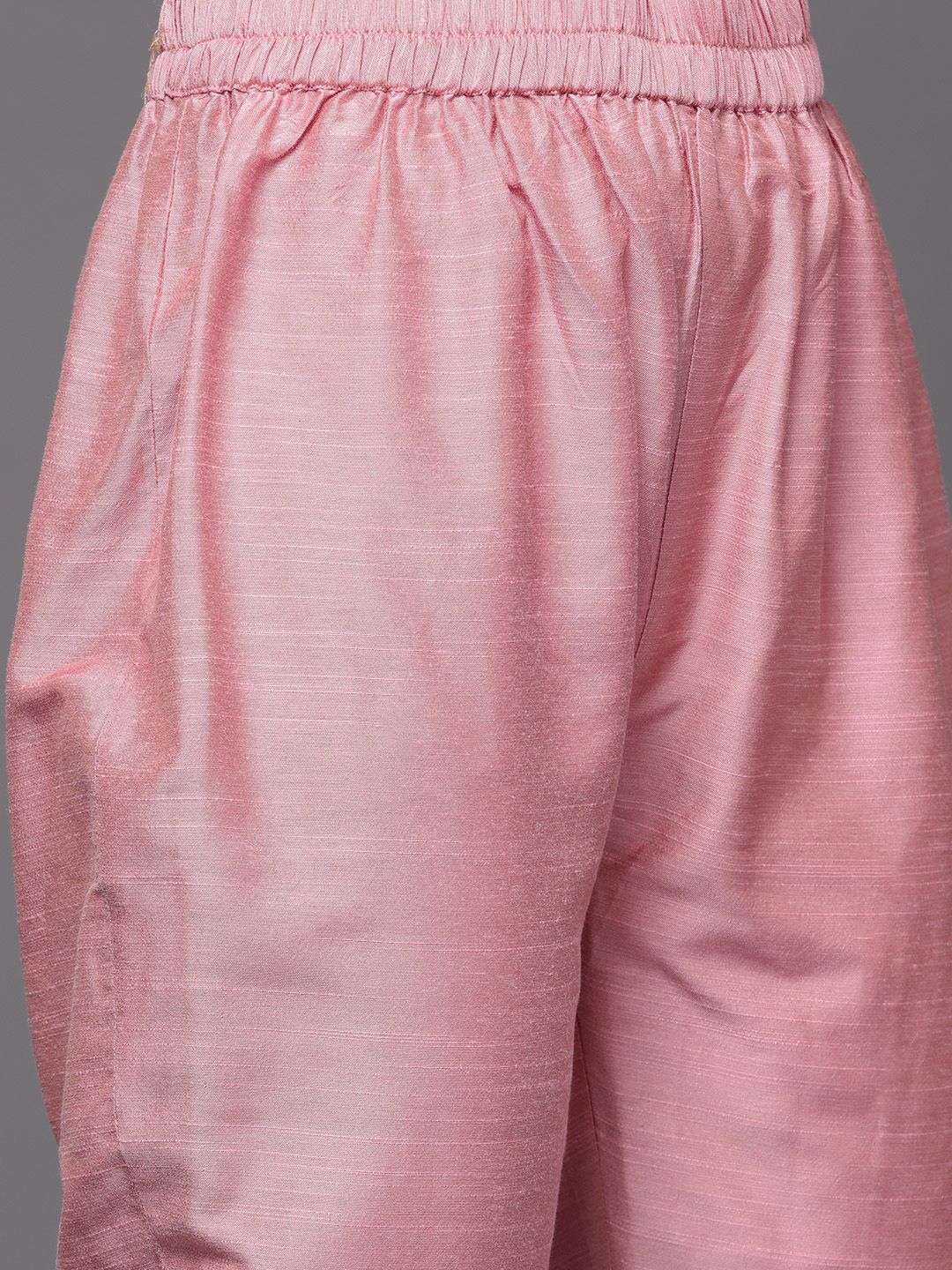 Dhiyona VA Women'sFloral Yoke Design Sequinned Dupion Silk Straight Kurta with Trouser & Dupatta