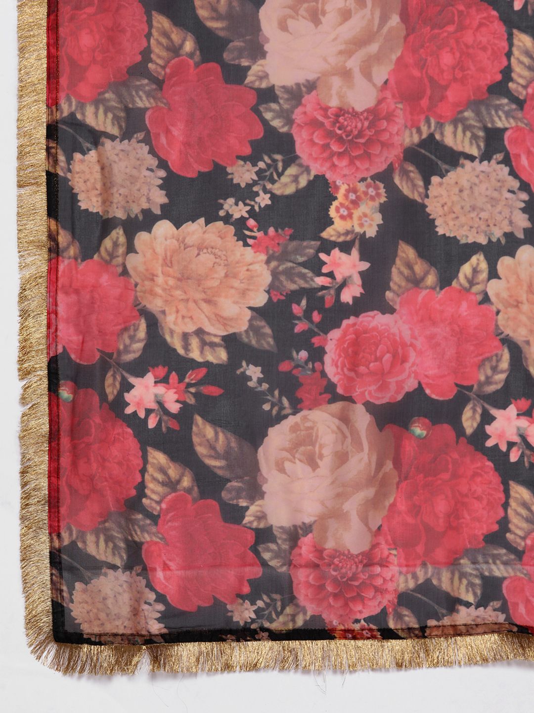 Dhiyona VA Women'sFloral Yoke Design Sequinned Kurta with Trousers & With Dupatta