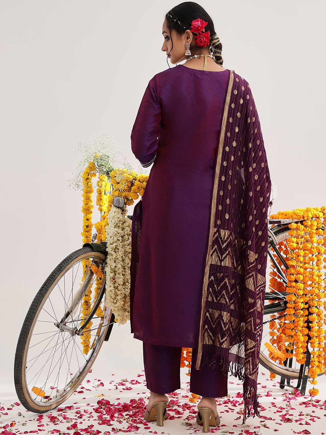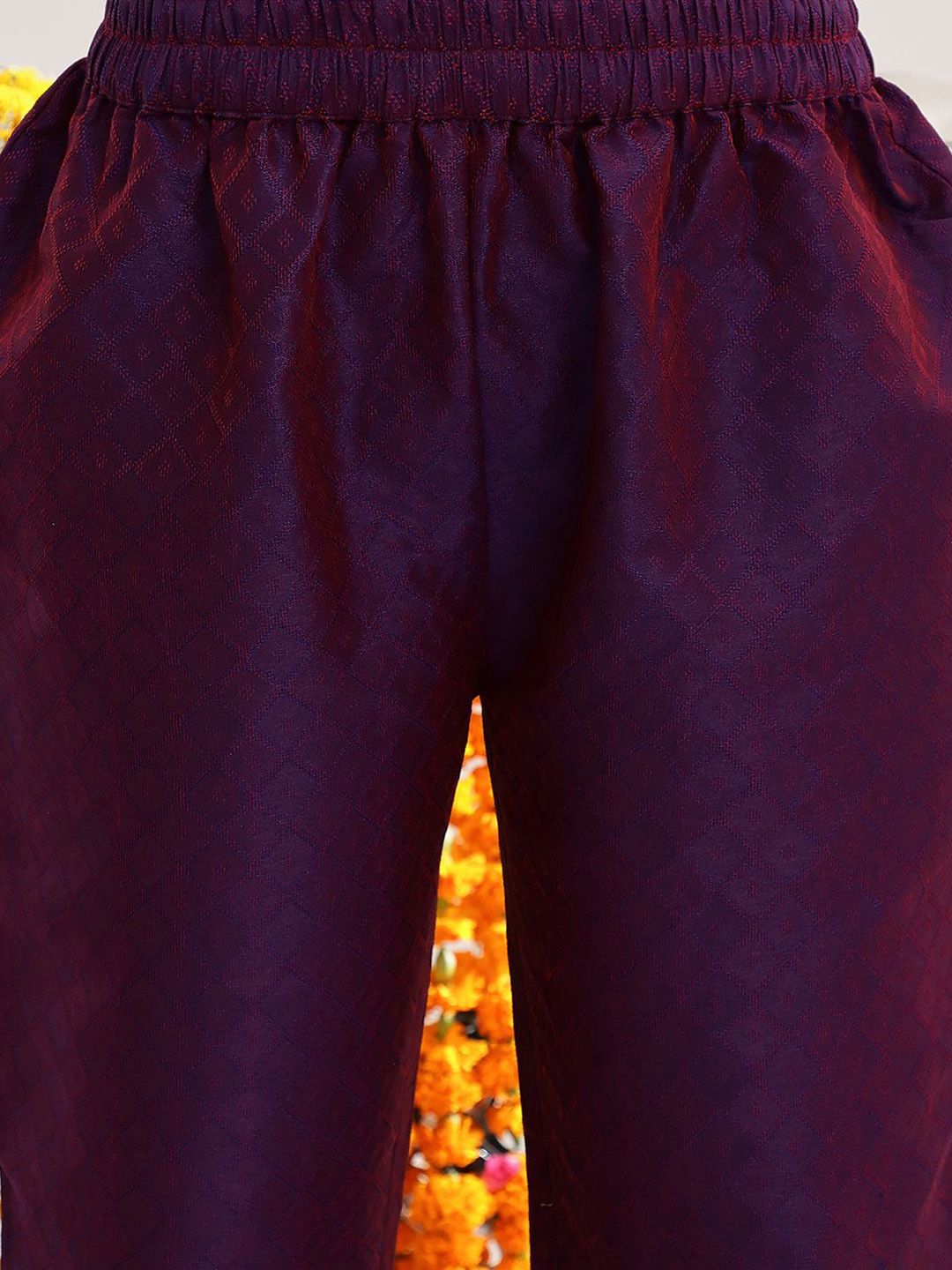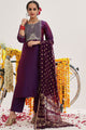 Purple and gold-toned kurta with trousers and dupatta