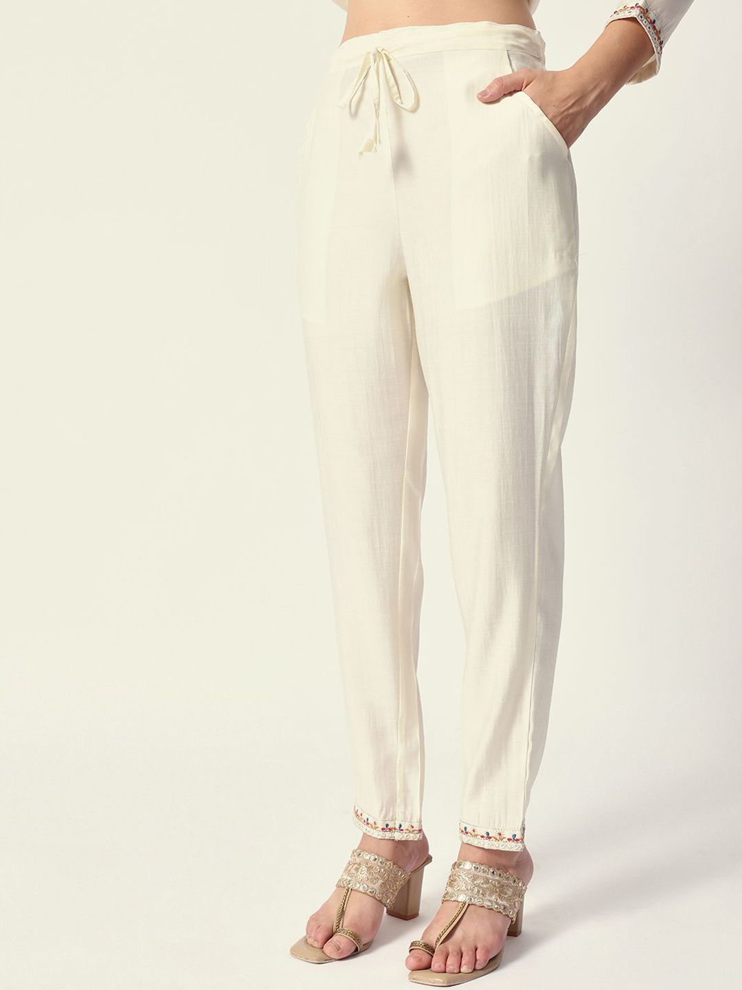 Dhiyona IS Women's Floral Yoke Design Thread Work Straight Kurta With Trousers And Dupatta