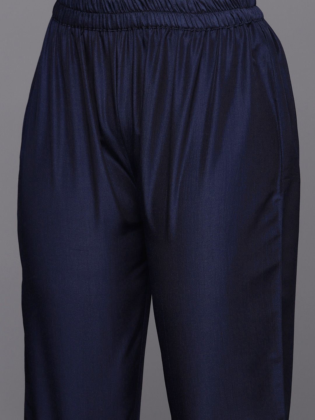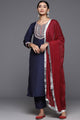 Navy blue, maroon & white yoke design Kurta with Trousers with dupatta