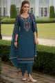 Blue and pink ,green embroidered kurta with Dhoti P & dupatta