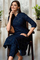 Navy blue,White and Black Printed Kurta with Trousers