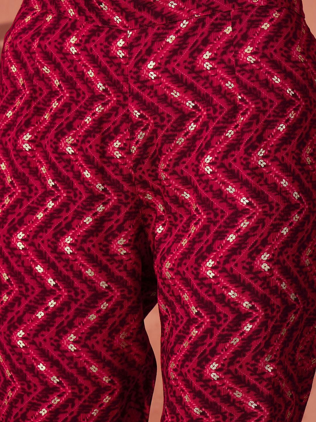 Dhiyona IS Women's Geometric Printed V-Neck Gotta Patti Kaftan Kurti With Trousers