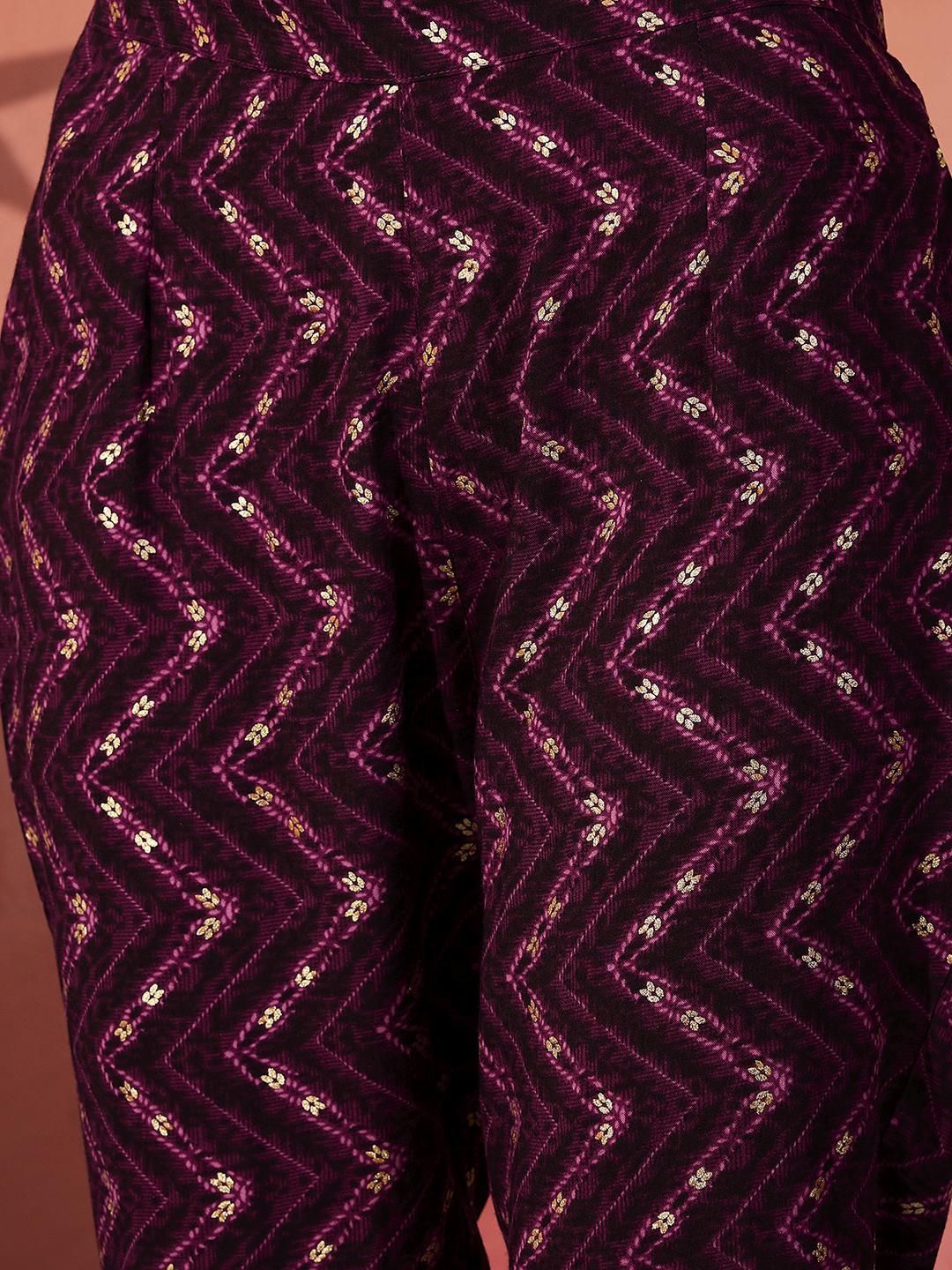 Dhiyona IS Women's Geometric Printed V-Neck Gotta Patti Kaftan Kurti With Trousers