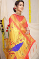 Dhiyona GR Women's Gol Mor Orange Zari Paithani Silk Saree