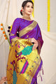 Dhiyona GR Women's Gol Mor Purple Zari Paithani Silk Saree