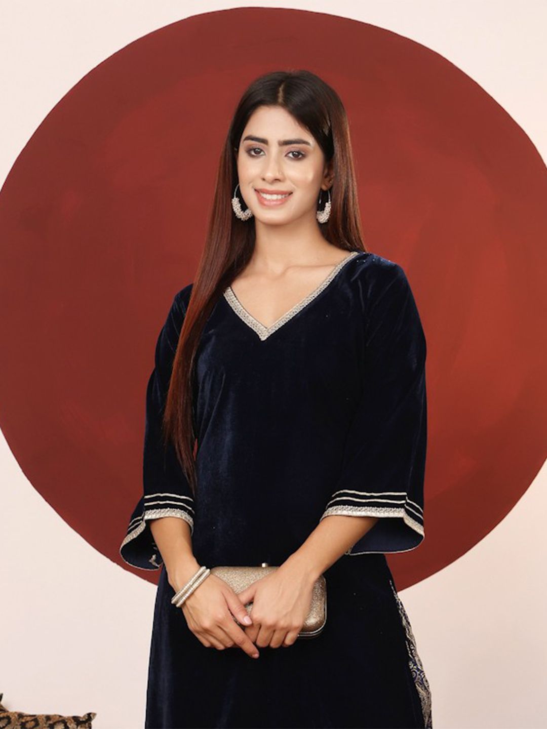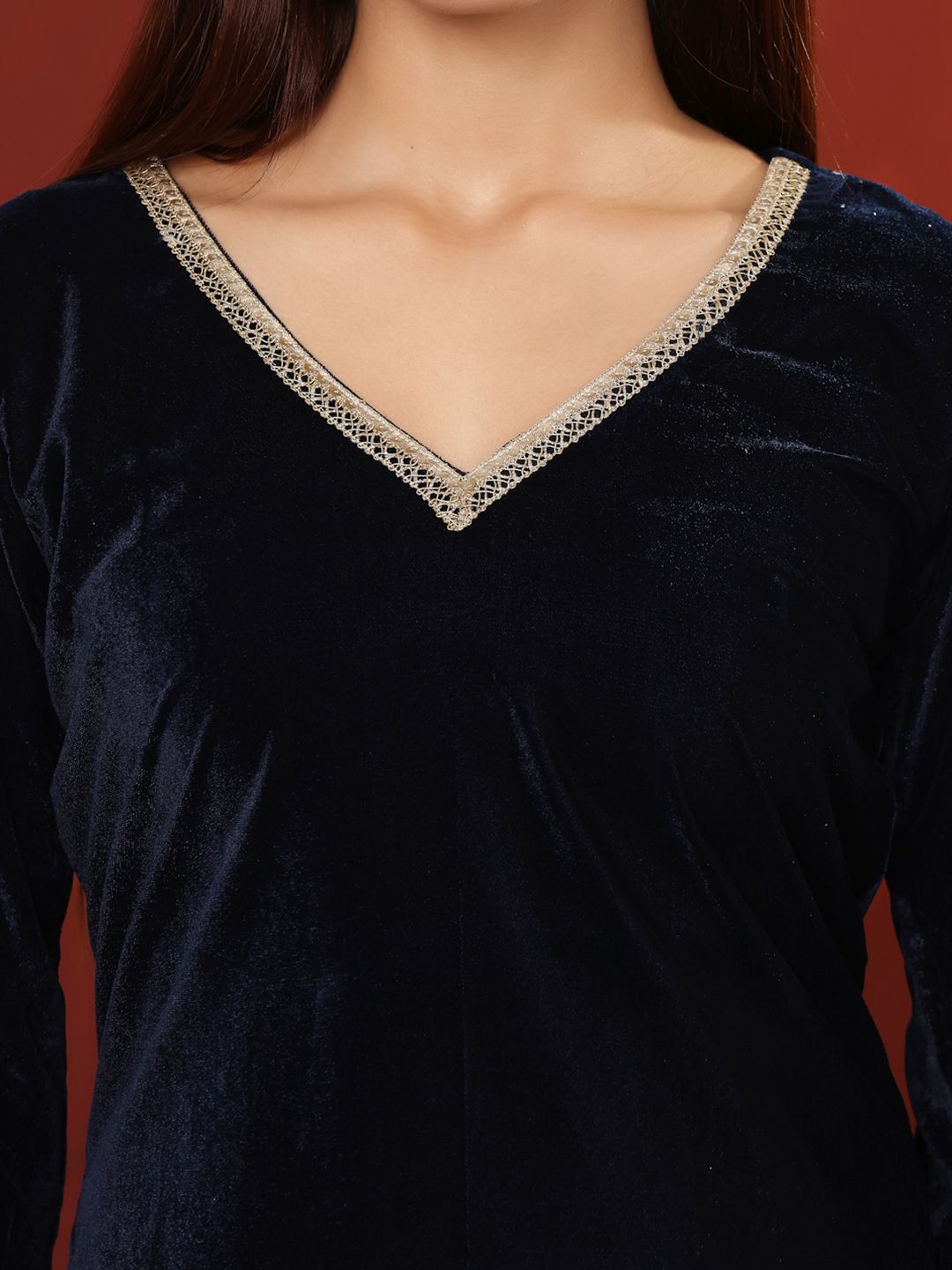 Dhiyona VA Women'sGota & Zari Embroidered Velvet Winter Kurta with Trouser