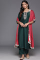 Solid green colored regular gotta patti straight Kurta with Trousers & with fringes border Dupatta.