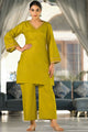 Dhiyona VA Women'sGreen Embroidered V-Neck Flared Sleeves Straight Kurta With Trousers