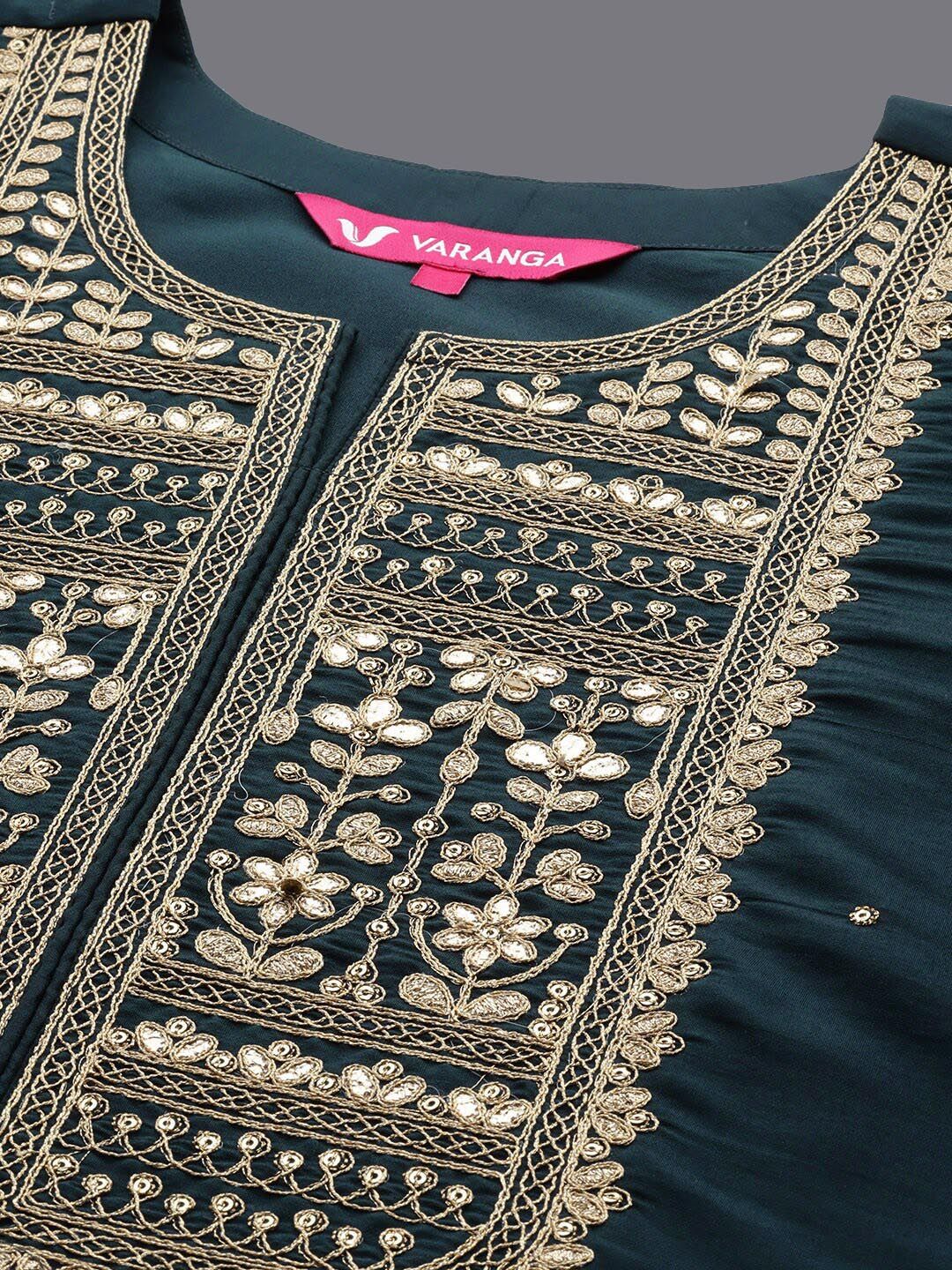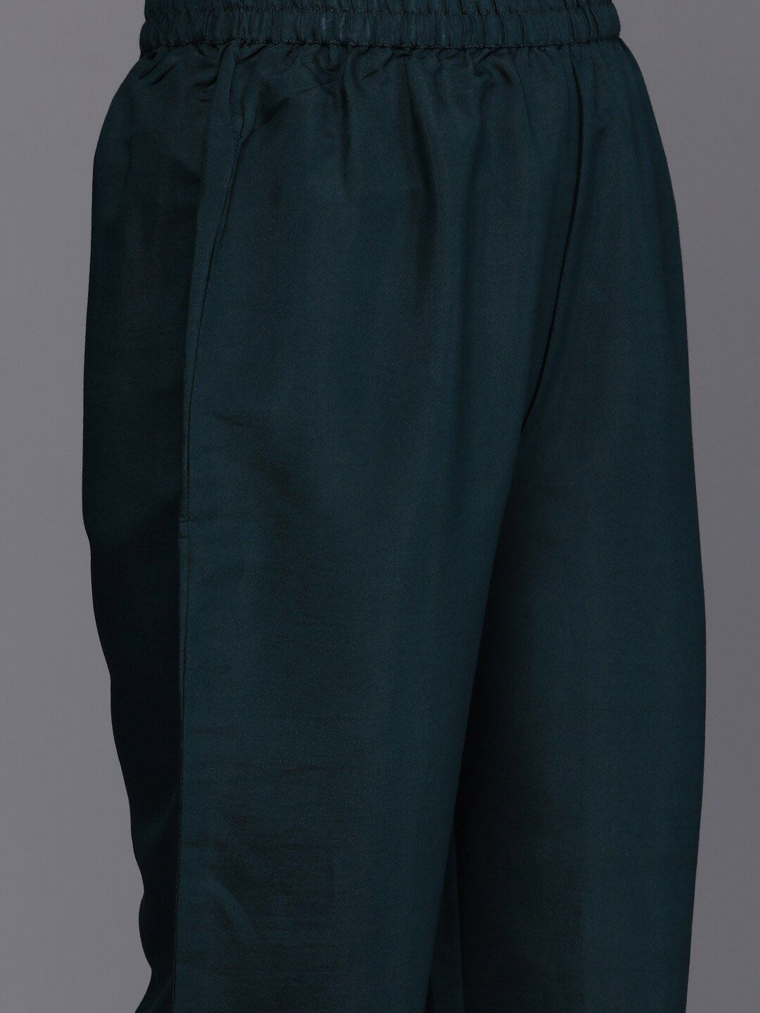 Green & gold toned embroidered Kurta with Trousers with dupatta