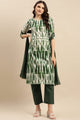 Dhiyona VA Women'sGreen Shibori Printed Sequinned Pure Cotton Kurta With Trousers & Dupatta