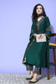 Dhiyona VA Women'sGreen Zari Embroidered Flared Sleeves Kurta with Trouser & Dupatta