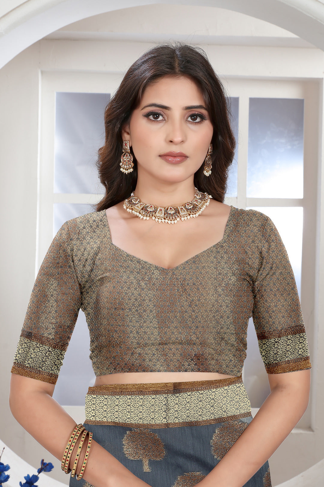 Dhiyona GR Women's Grey Zari Woven Design Chanderi Cotton Saree