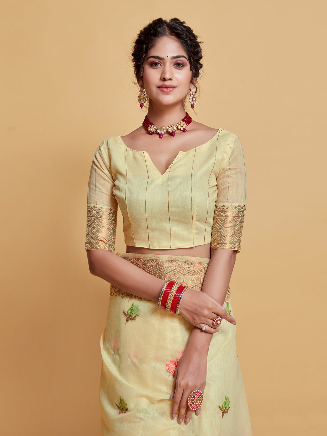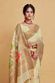 Dhiyona GR Women's Gulabo Almond Beige Woven Jamewar Kashmiri Modal Silk Saree