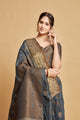 Dhiyona GR Women's Kashvi Mouse Grey Zari Woven Design Chanderi Cotton Saree