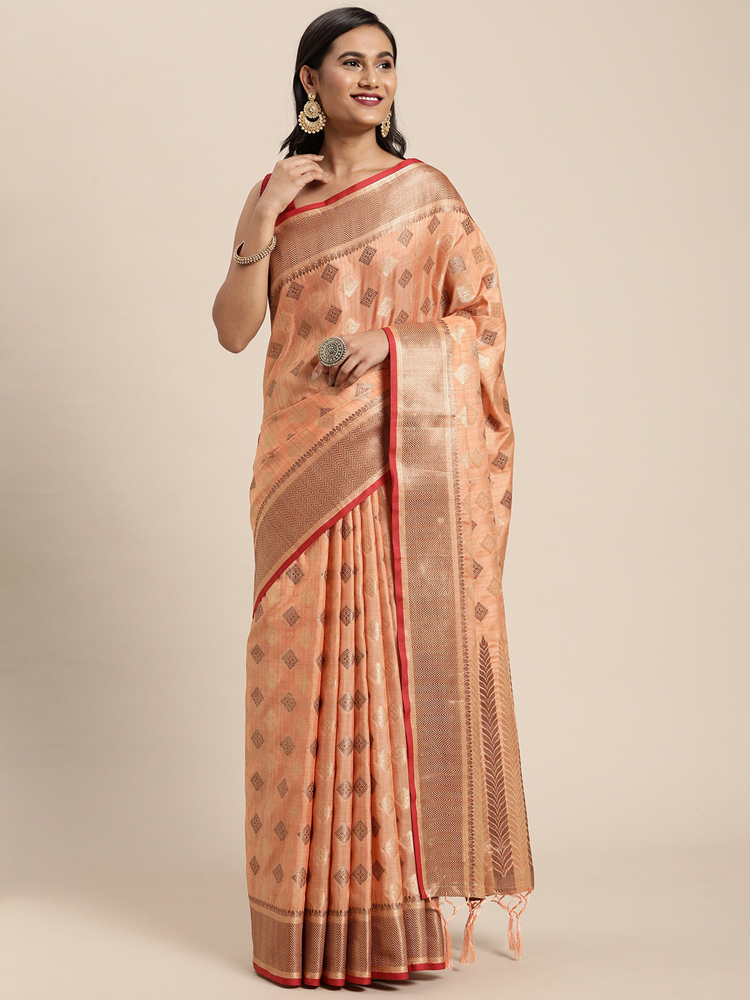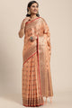 Dhiyona GR Women's Kesar Peach Orange Zari Woven Design Banarasi Pure Cotton Saree