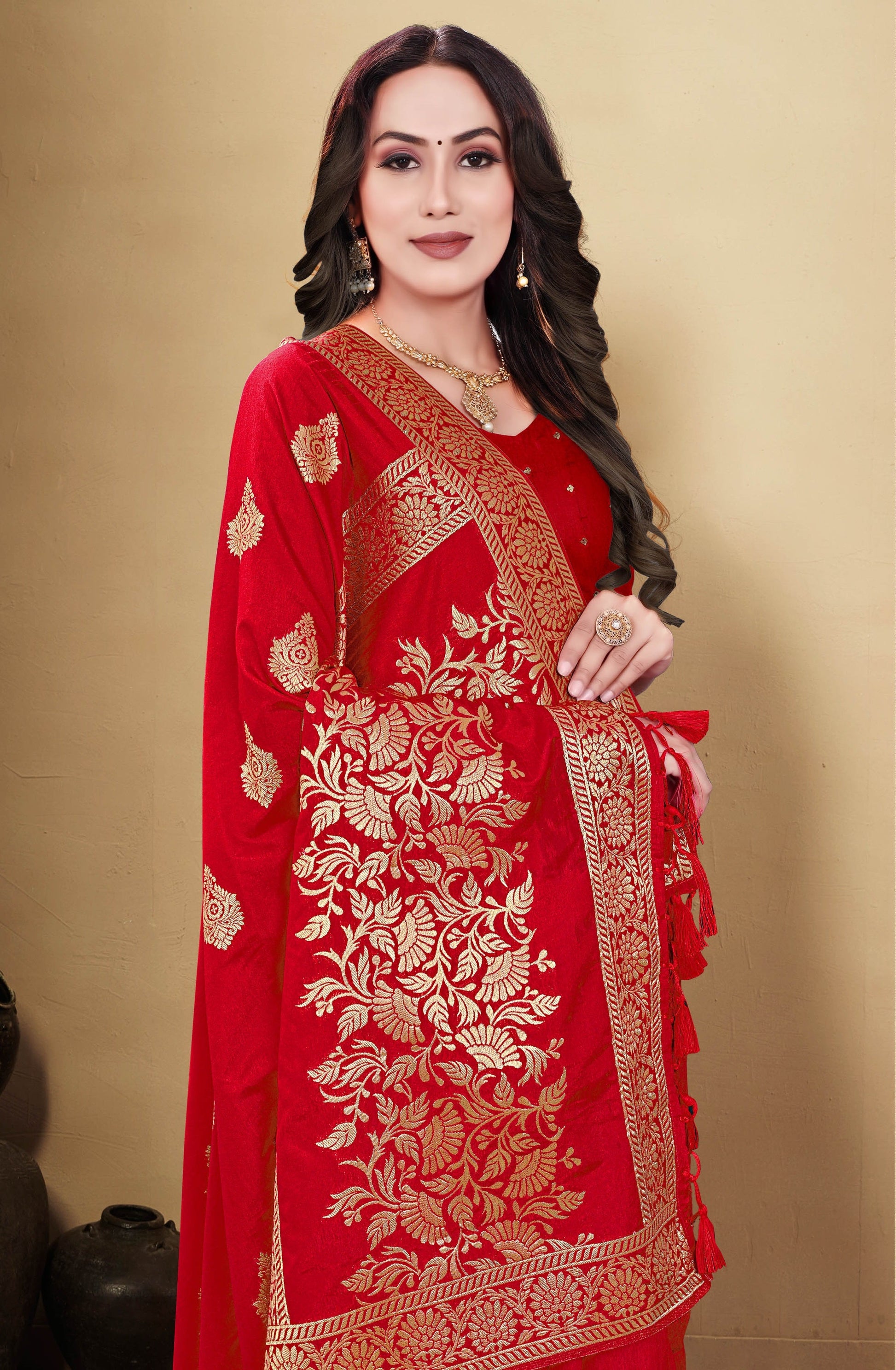 Dhiyona GR Women's Kocham Silk Red Silk Woven Saree