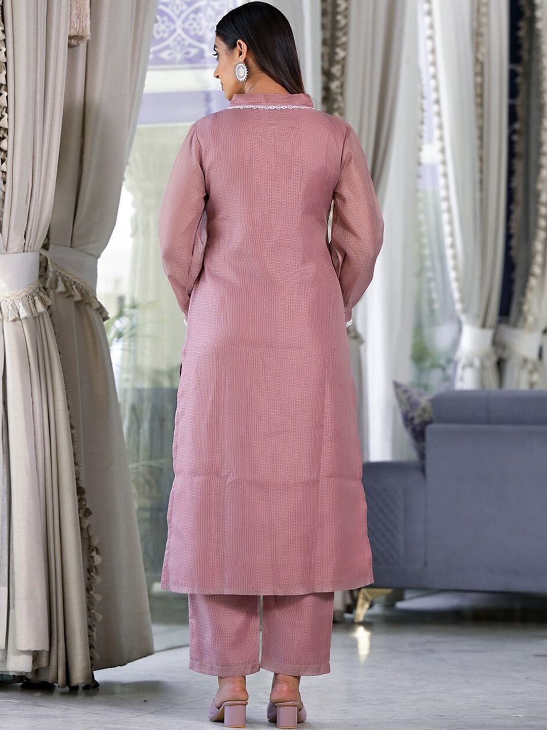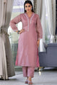 Mauve self design Kurta with Trousers