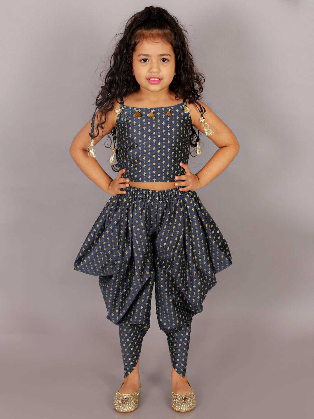 Enhance Your Style with Fusion Fair Girls Navy Crop Top and Dhoti Girls Co-ordinate set