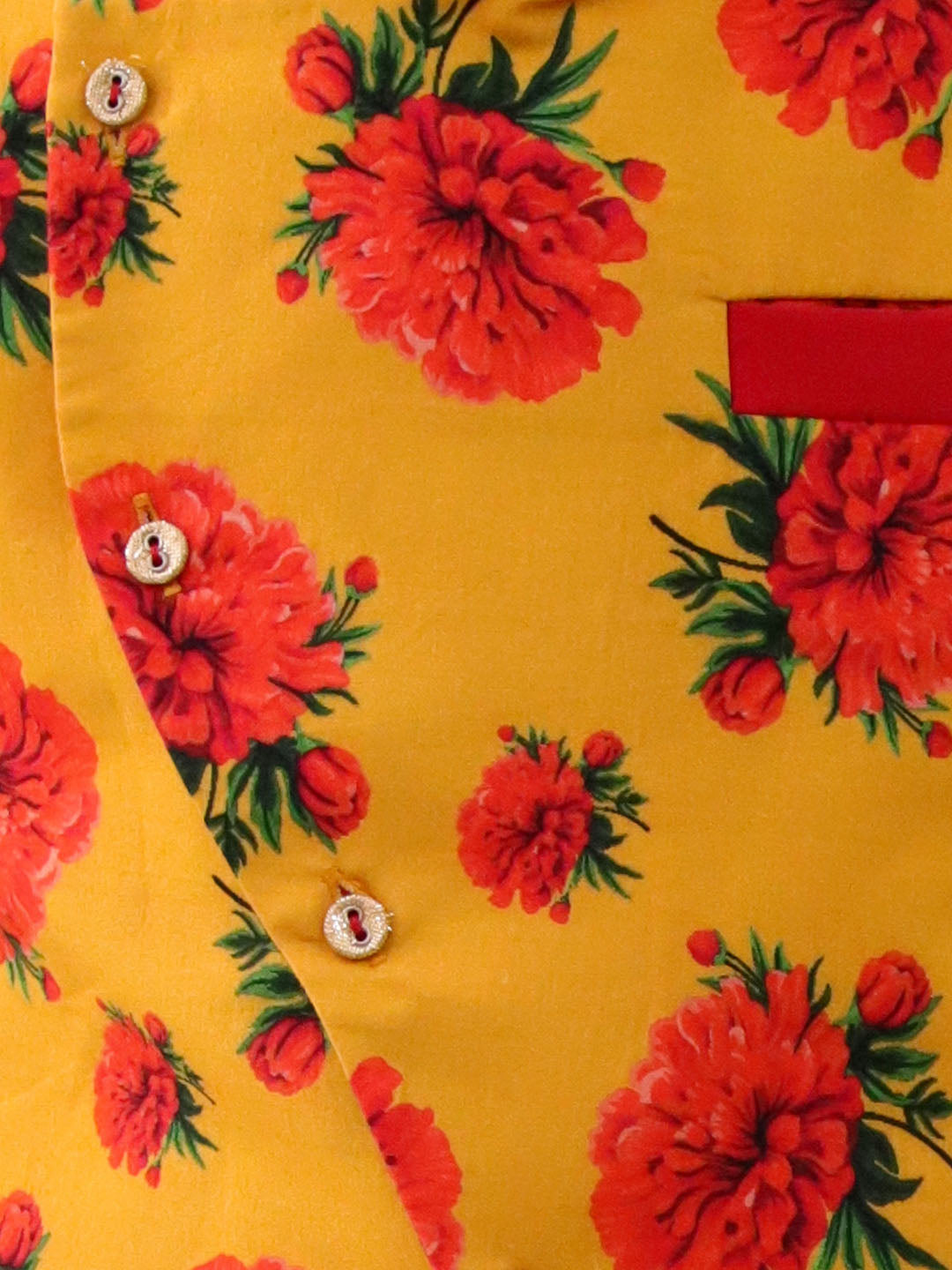 Elegant Layer: Floral-printed sleeveless jacket adds vibrant charm