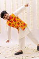 Genda Phool White Kurta and Pant with Mustard Jacket Set for Boys